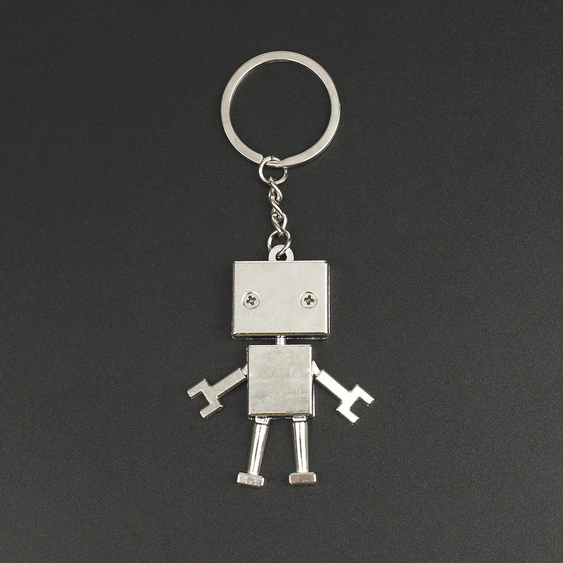 พวงกุญแจหุ่นยนต์สีบรอนซ์พวงกุญแจแบบกล่องสีเงินพวงกุญแจรูปตุ๊กตาสำหรับผู้ชายสลักของขวัญตามสั่งได้