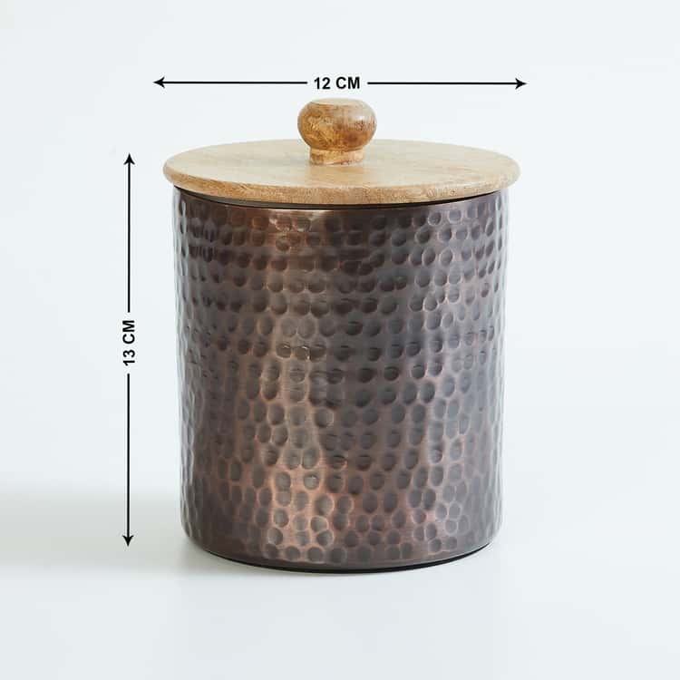 Bronze Textured Aluminium Storage Canister With Mango Wood Lid