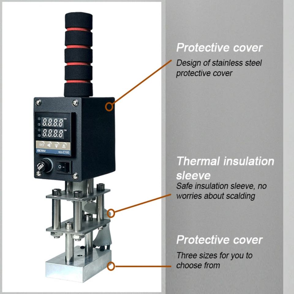 เครื่องปั๊มตราสินค้าแบบแมนนวลขนาดเล็ก สำหรับงานปั๊มบนวัสดุต่างๆ เช่น กระเป๋า ซองใส่โทรศัพท์ สายเข็มขัด กระเป๋าสตางค์ ไม้ และอื่นๆ