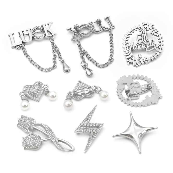 เข็มกลัดแฟชั่นสุดหรูสำหรับผู้หญิงเข็มกลัดพลอยเทียมสำหรับผู้หญิงเข็มกลัดโลหะไข่มุกสีทองแบบกำหนดเอง