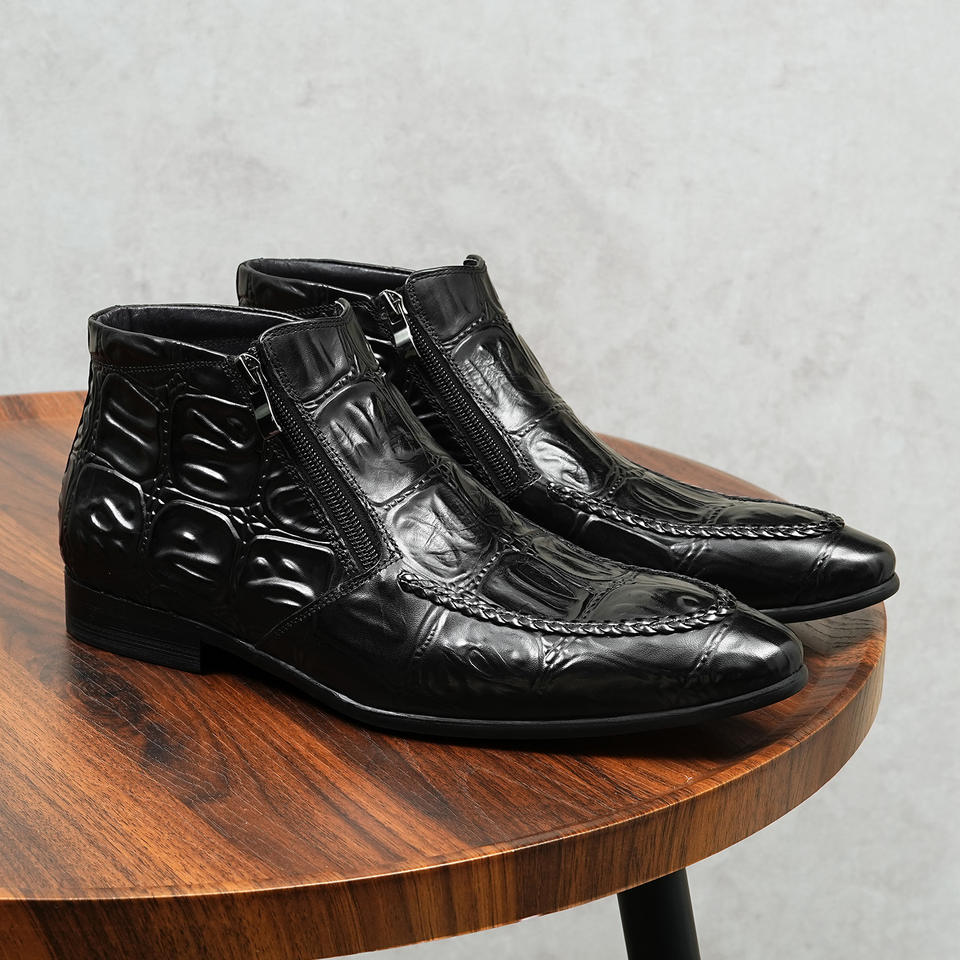รองเท้าหนังลำลองสไตล์อังกฤษ Brook Embossed พื้นหนาเคลือบเงา ตกแต่งด้วยสีเพ้นท์ด้วยมือ สำหรับผู้ชาย ลายเสือดาว ฤดูใบไม้ร่วง