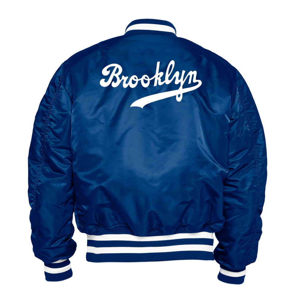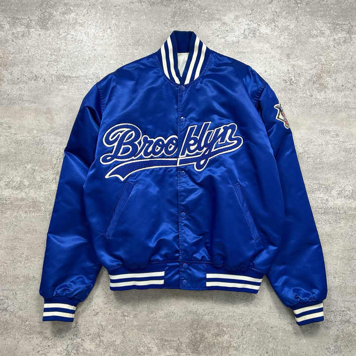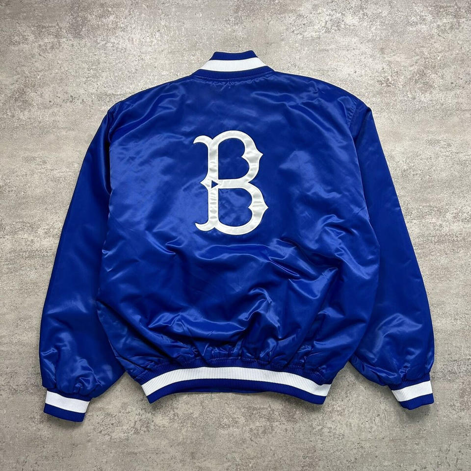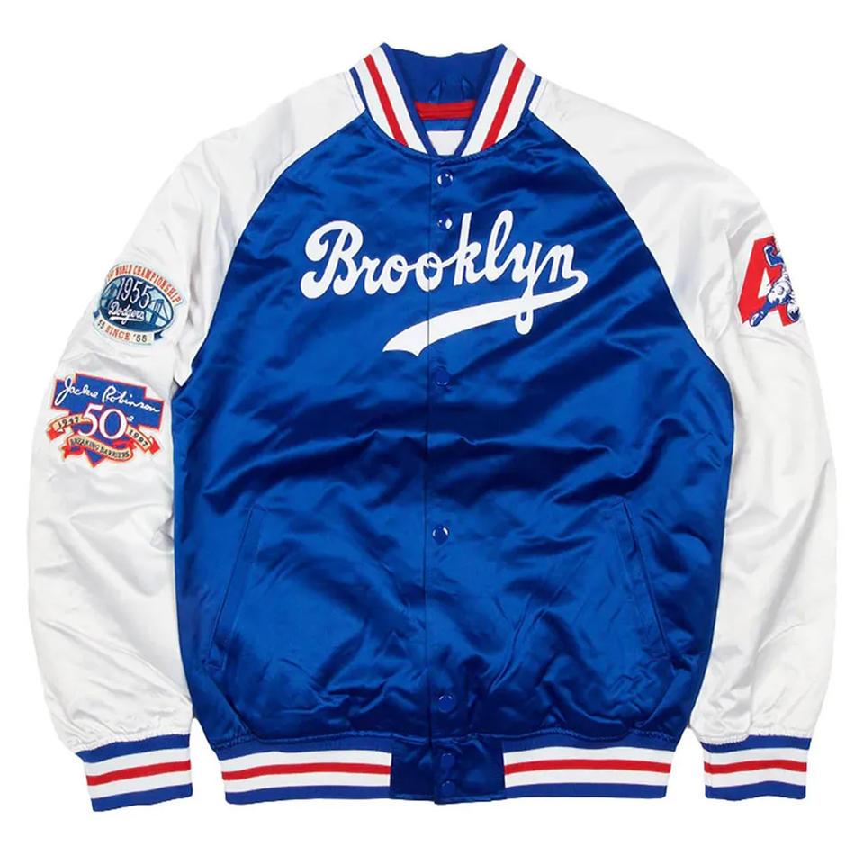 Brooklyn JACKIE ROBINSON Legends แจ็คเก็ตผ้าซาตินสไตล์สตรีทในเมืองเสื้อบอมเบอร์แจ็คเก็ตเบสบอลวิทยาลัยมีปกคอตั้งสำหรับฤดูหนาว