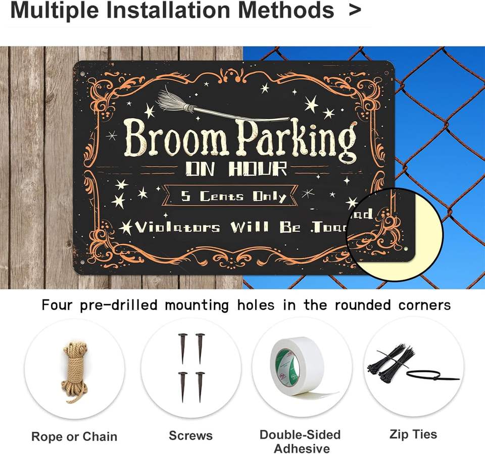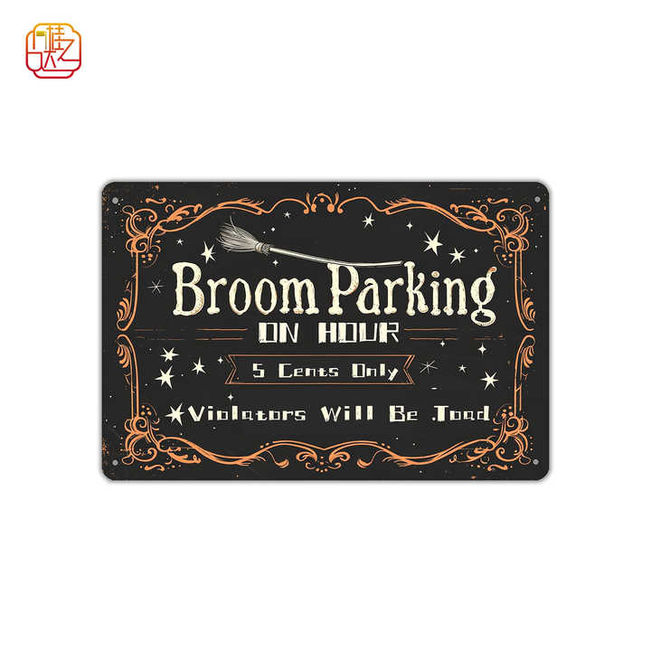 ป้ายโลหะวินเทจ ฮาโลวีน ข้อความภาษาอังกฤษ: ที่จอดรถสำหรับรถกวาดถนนเท่านั้น ผู้ฝ่าฝืนจะถูกดำเนินการ ป้ายอะลูมิเนียม สำหรับบ้าน คาเฟ่ บาร์ ระเบียง ลานบ้าน ประตูหน้า