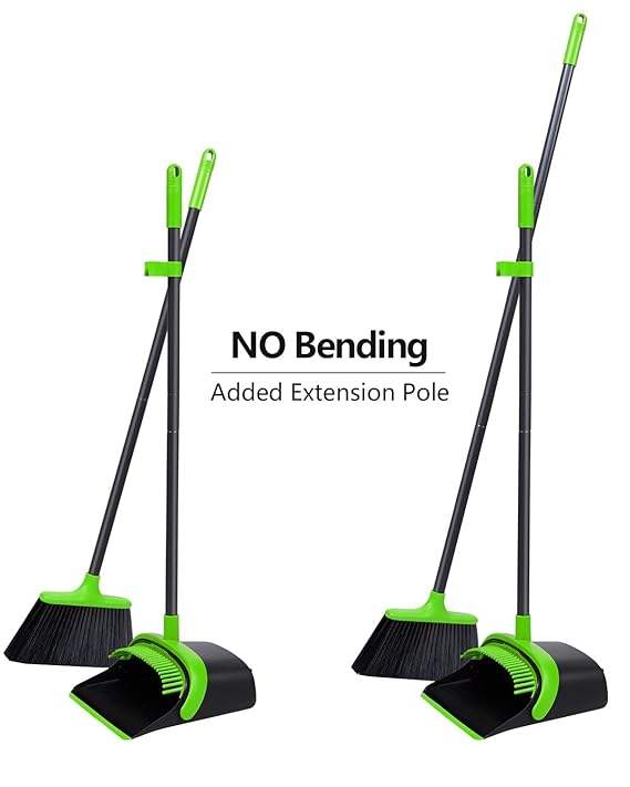 ชุดไม้กวาดและที่โกยผงสำหรับอัพเกรดบ้าน ไม้กวาดด้ามยาว 52 นิ้ว พร้อมชุดที่โกยผง สำหรับทำความสะอาดพื้นบ้าน ห้องครัว ห้องทำงาน