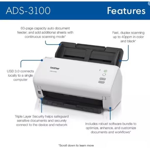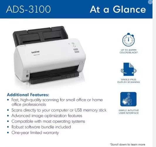 Brother ADS-3100สแกนเอกสาร USB พร้อมองค์ประกอบสแกน CIS ในสต็อก