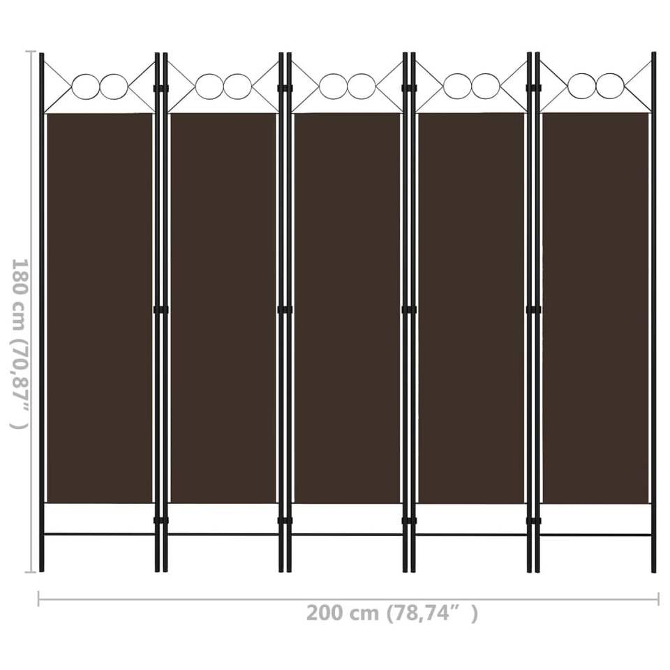 ฉากกั้นห้อง 5 แผง สีน้ำตาล ขนาด 78.7 นิ้ว x 70.9 นิ้ว