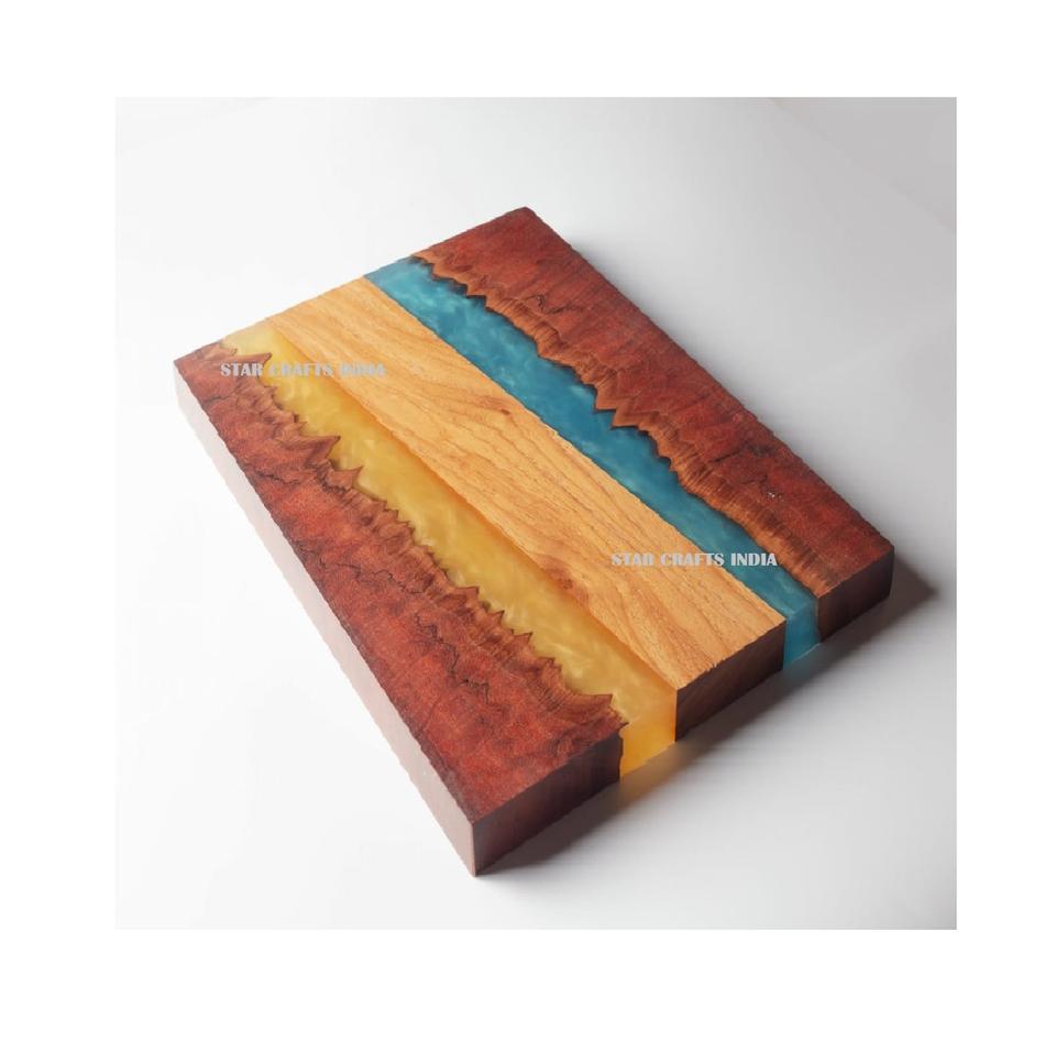 ไม้อะคาเซียมะม่วงสีน้ำตาลมีเรซินสีฟ้าและน้ำตาลคณะกรรมการตัดชีสโลโก้ที่กำหนดเองคุณภาพสูงสำหรับร้านอาหารในราคาถูก