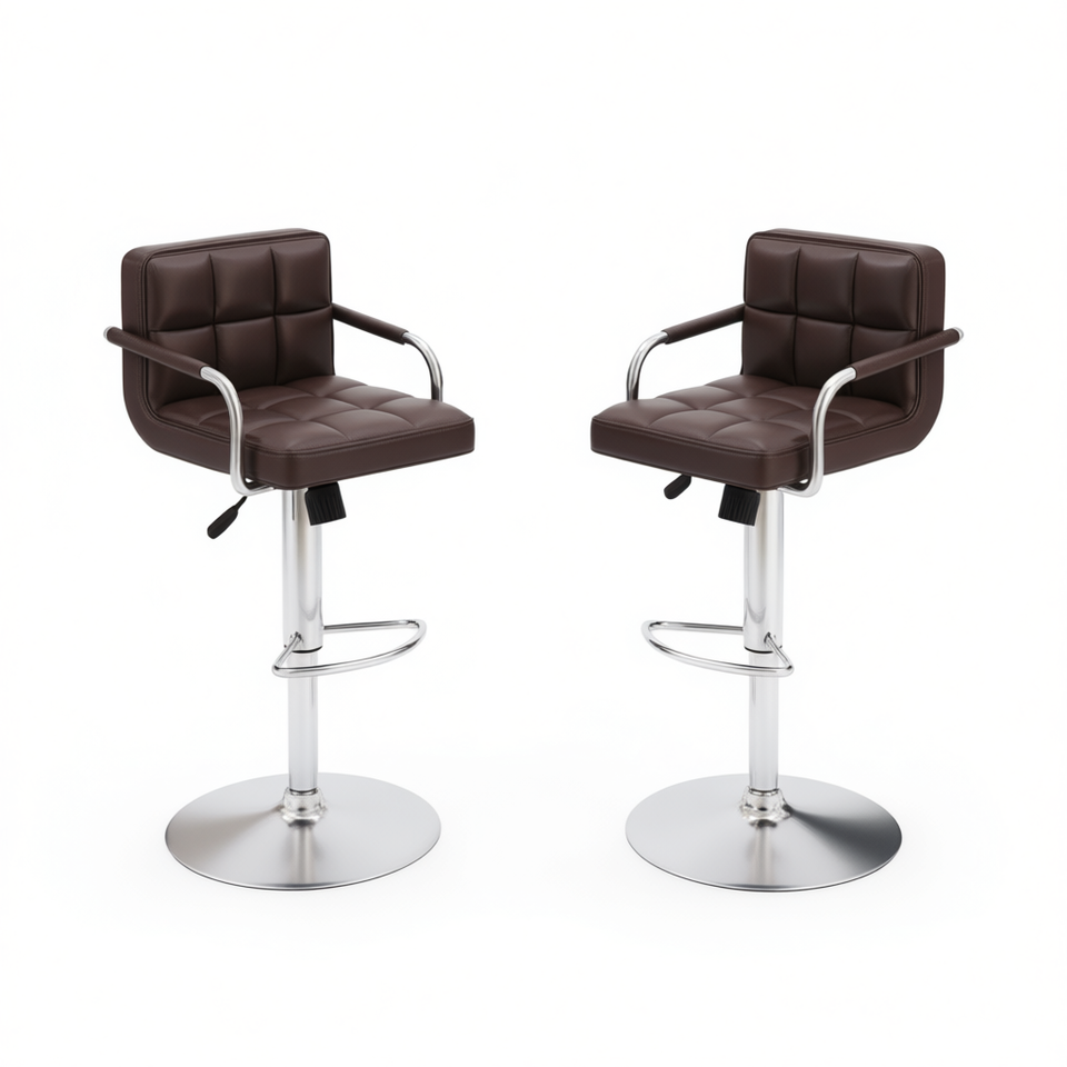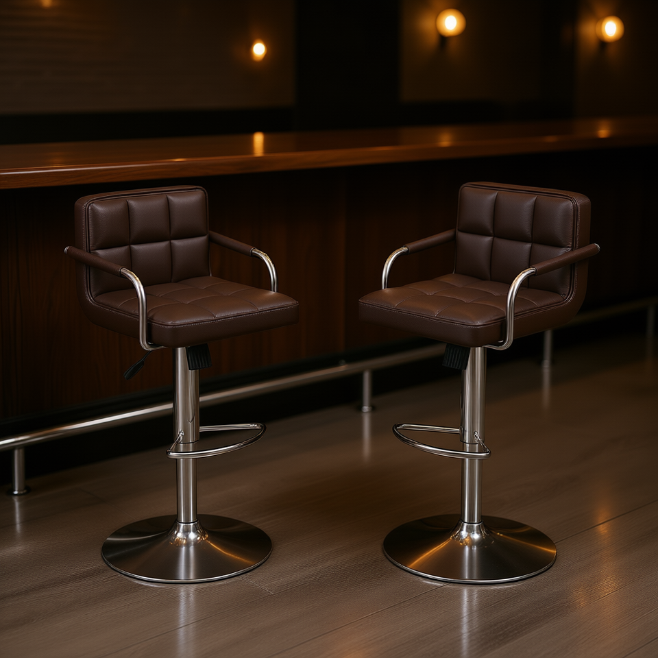 เก้าอี้บาร์สีน้ำตาล ชุด 2 ตัว ปรับความสูงได้ ฐานโลหะทรงกลม หนัง PU เฟอร์นิเจอร์บาร์สไตล์ร่วมสมัย