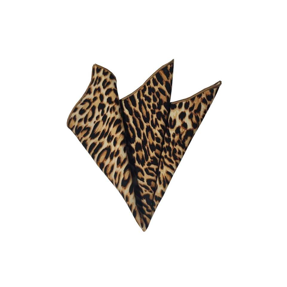ผ้าเช็ดหน้าคอกระเป๋าผ้าวิสคอสลายเสือดาวสีน้ำตาลเบจสีดำ