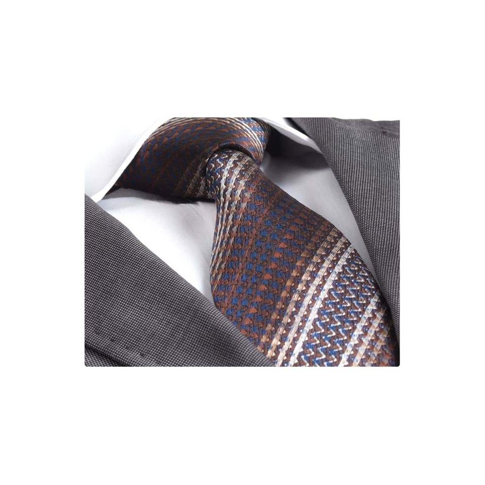 เนคไทผ้าแจ็คการ์ดลายชนเผ่าสีน้ำตาลเบจ