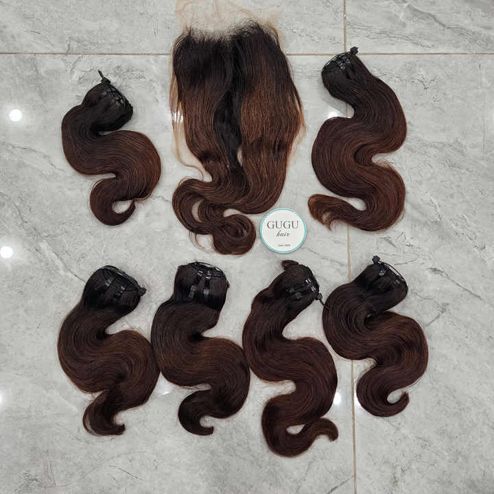 ผมเวอร์จินสีน้ำตาลแบบ Body Wave พร้อมเชือกผูกผมแบบใส วิกผมเวียดนามแท้ 100% สำหรับผู้หญิง