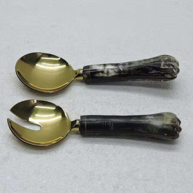 ชุดเครื่องใช้บนโต๊ะอาหารด้ามกระดูกสีน้ำตาลมาใหม่ชุดเครื่องใช้บนโต๊ะอาหารที่บ้านทำจากสแตนเลสงานเลี้ยงคริสต์มาสงานแต่งงานงานปาร์ตี้