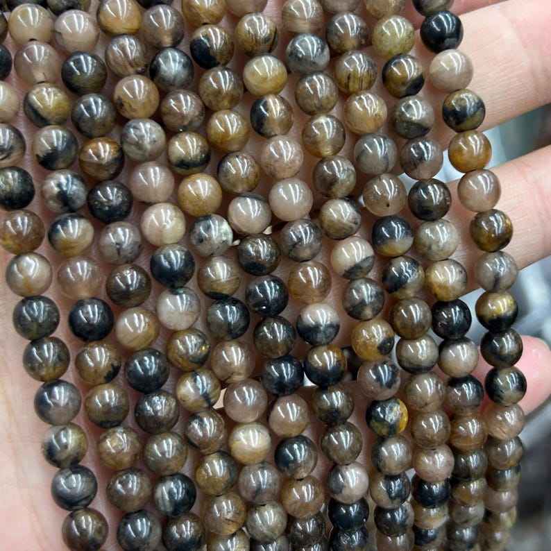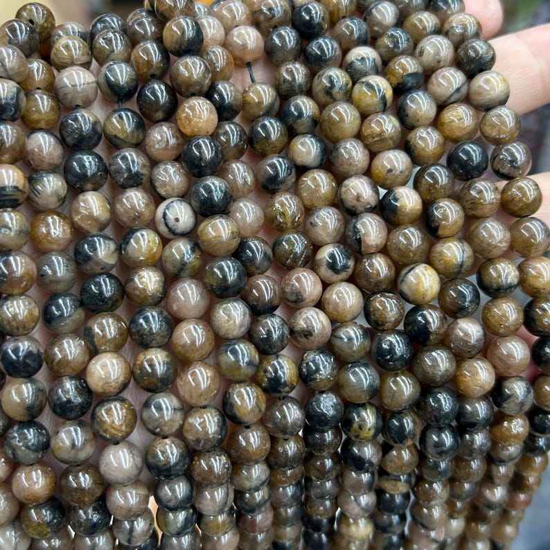 ลูกปัดไคแอสโตไลต์สีน้ำตาล ลูกปัดหินอัญมณีทรงกลมธรรมชาติ สำหรับทำเครื่องประดับ งานฝีมือ DIY
