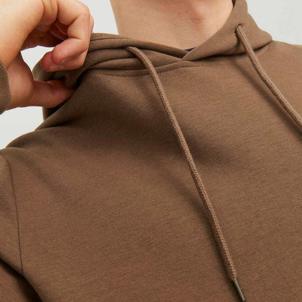 เสื้อมีฮู้ดสวมหัวถักแบบคลาสสิกสีน้ำตาลฤดูหนาวลวดลายสีทึบระบายอากาศและซักได้
