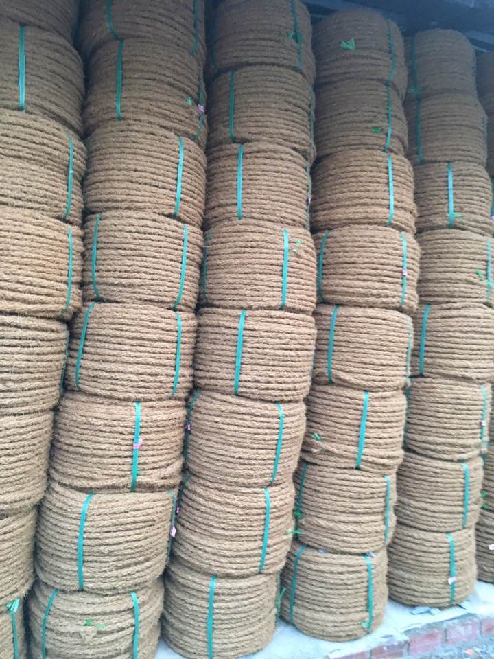 เชือกมะพร้าวสีน้ำตาลเชือกเส้นใยมะพร้าวทำด้วยมือธรรมชาติ