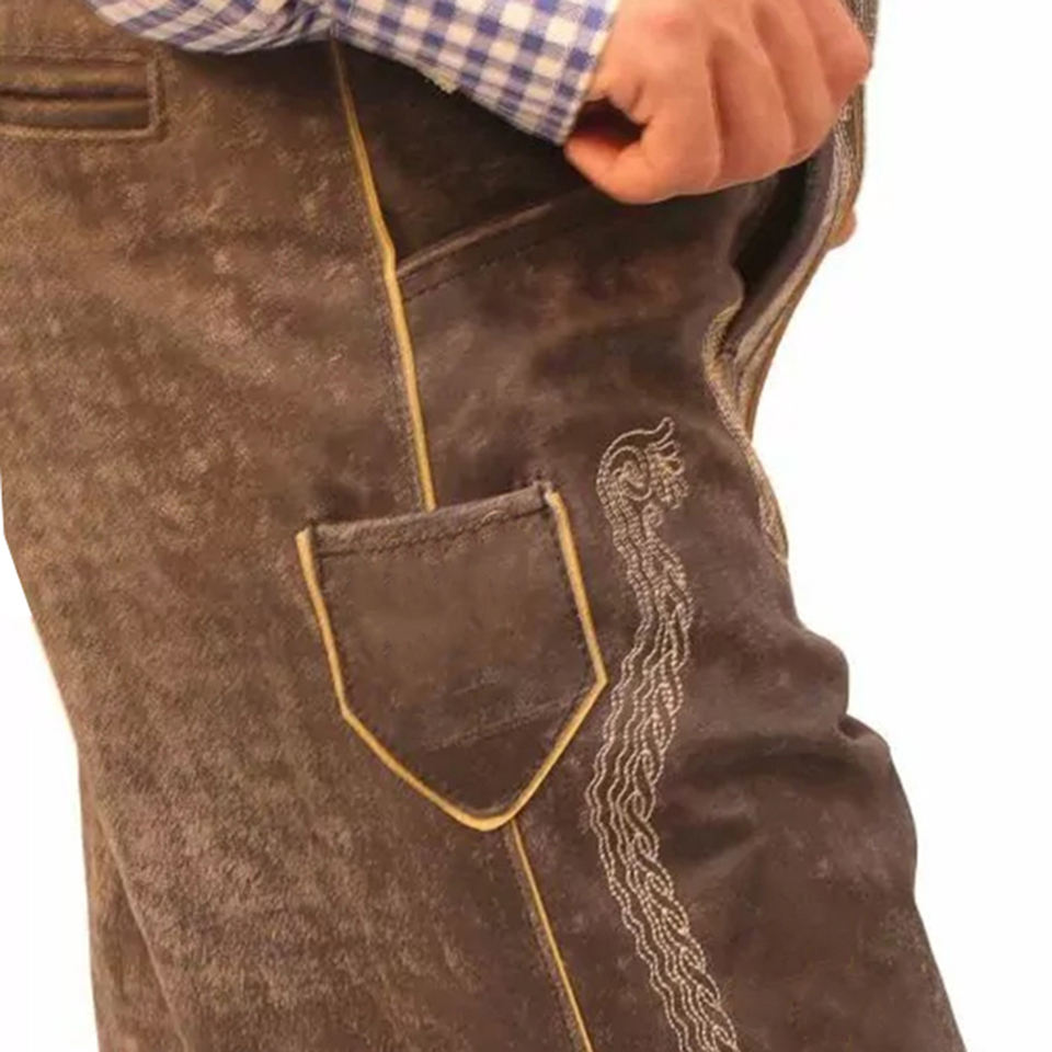 หนังกวางสีน้ำตาลทำกางเกงขาสั้น Lederhosen แบบกำหนดเองพร้อมกางเกงขาสั้นที่กำหนดเองพร้อมบริการ OEM ODM