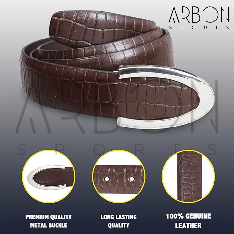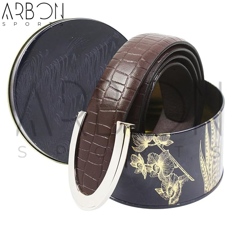 เข็มขัดหนังสำหรับผู้ชายสีน้ำตาลทันสมัยคลาสสิกทันสมัยพร้อมหัวเข็มขัดปรับได้