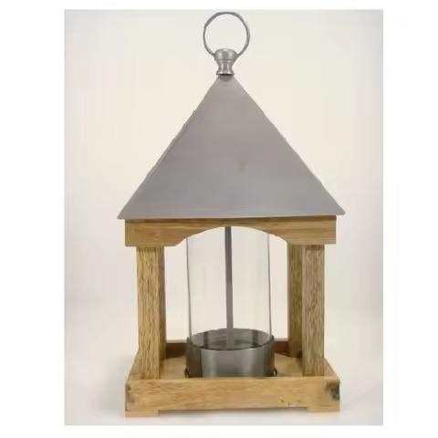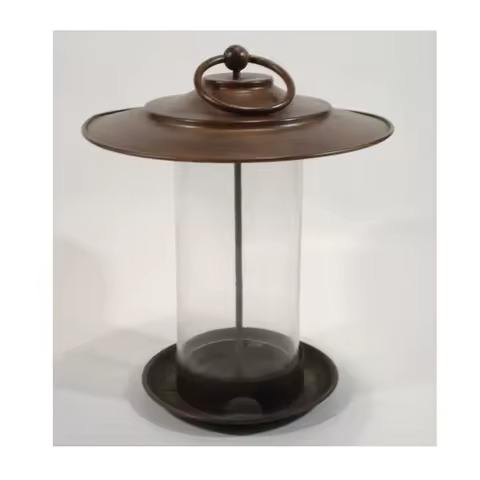 หลอดแก้วป้อนนกทำจากโลหะทาสีน้ำตาลพร้อมห่วงแขวนสำหรับในร่มกลางแจ้งระเบียงสวนแขวนที่ป้อนนกโลหะ
