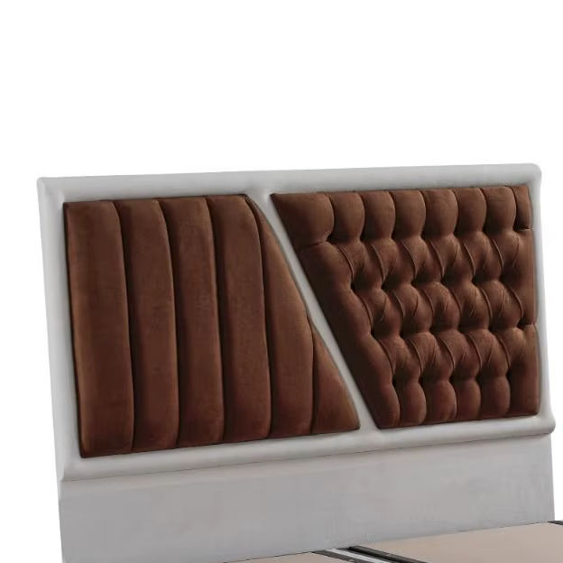Brown Cushioned Foam Headboard Soft Fabric Upholstered Modern Bedroom Furniture