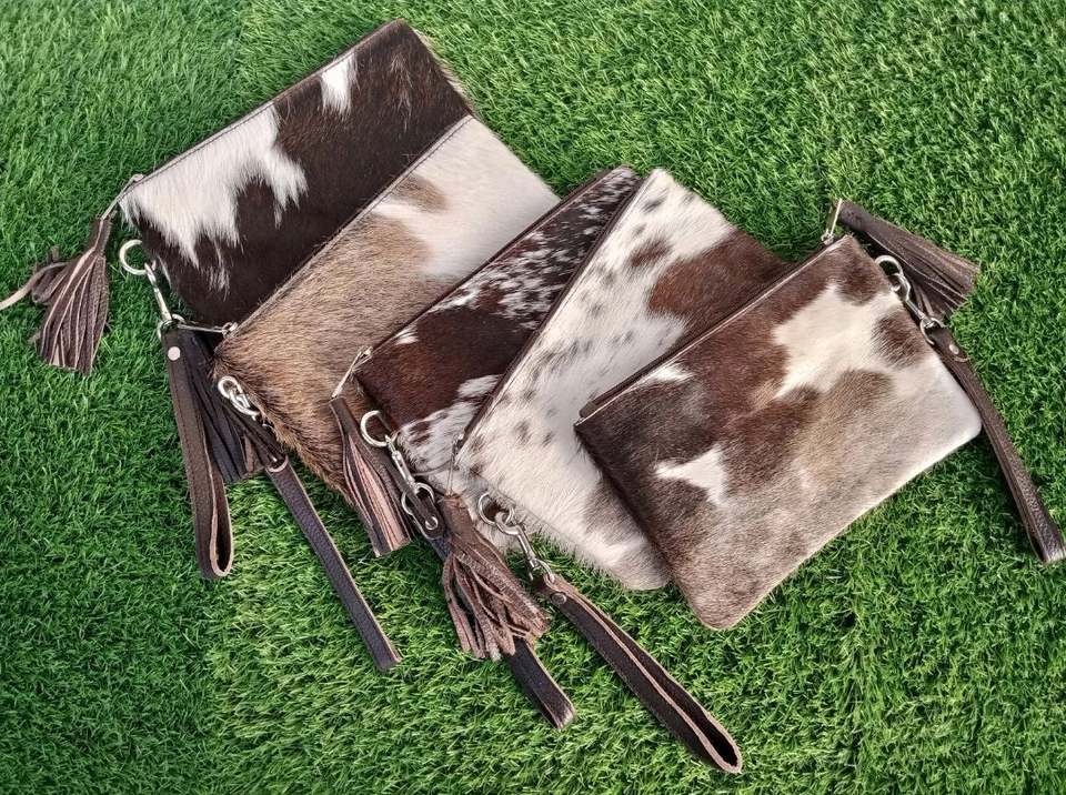 กระเป๋าคลัทช์หนังวัวสีน้ำตาลสุดหรูสำหรับผู้หญิงลายโลโก้แบบกำหนดเองพร้อมกระเป๋าถือมีกระดุมปิดซิป
