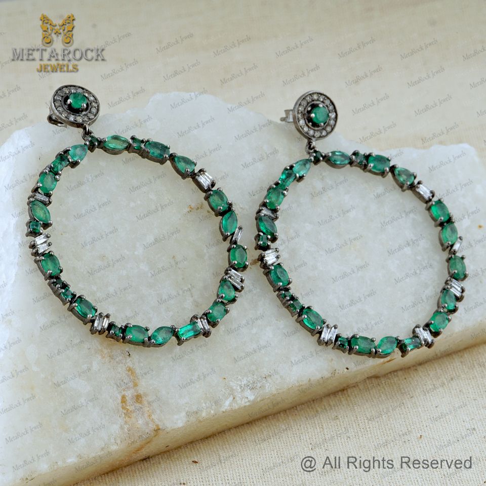เพชรสีน้ำตาล925เงินออกแบบรอบต่างหู14Kt ผลักดันกลับมรกตอัญมณีเครื่องประดับที่ทำด้วยมือ