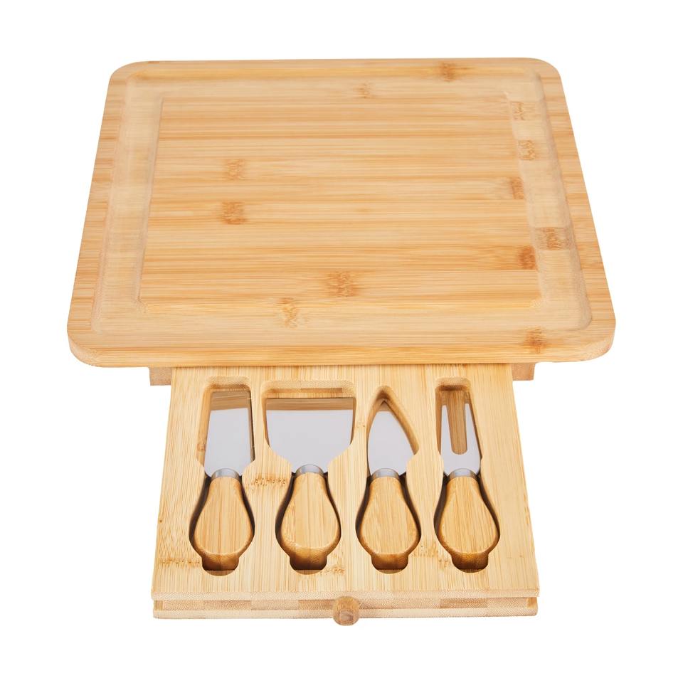ชั้นวางของในครัวไม้สีน้ำตาลสำหรับจัดเก็บอเนกประสงค์ ชุดชั้นวางชีสและที่วางมีดสำหรับวางบนเคาน์เตอร์