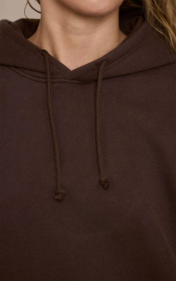 เสื้อฮู้ดผ้าฟลีซสีน้ำตาลสำหรับผู้หญิง ทรงหลวม มีกระเป๋าแบบจิงโจ้ บริการผลิตเสื้อผ้าและจัดหาวัสดุ