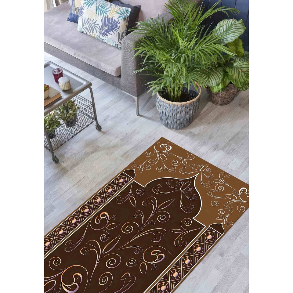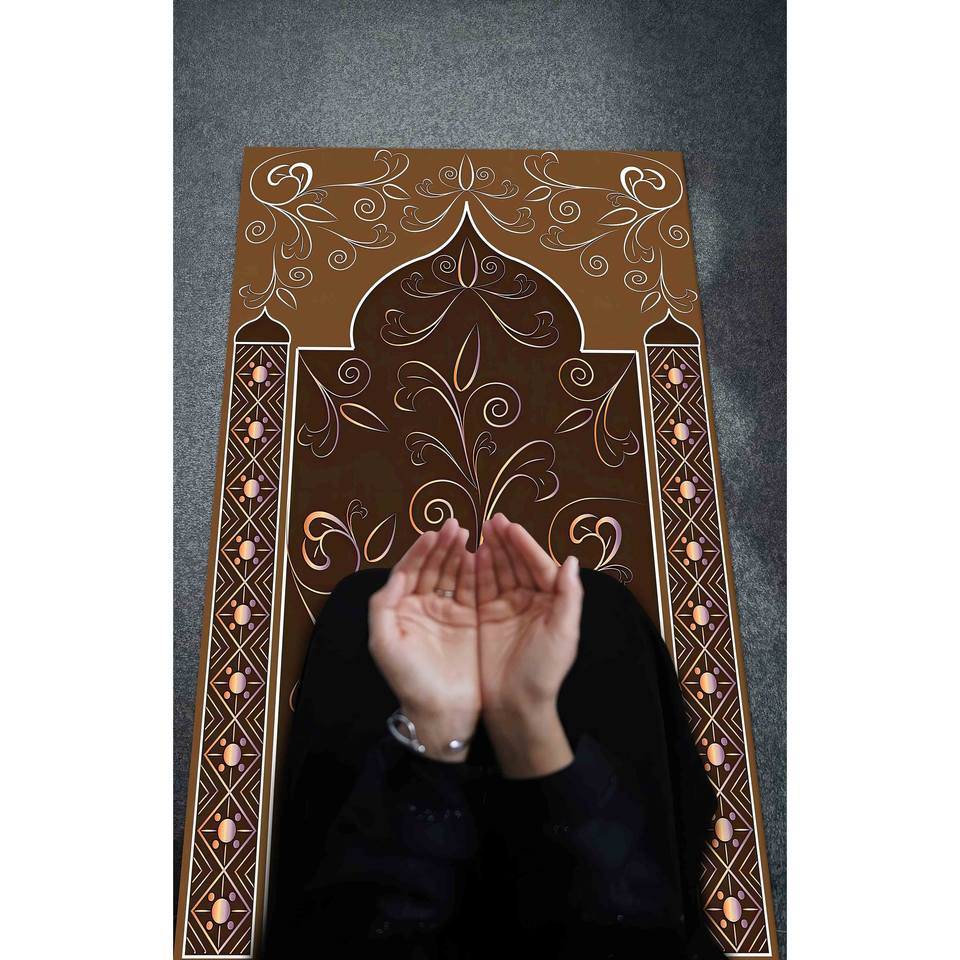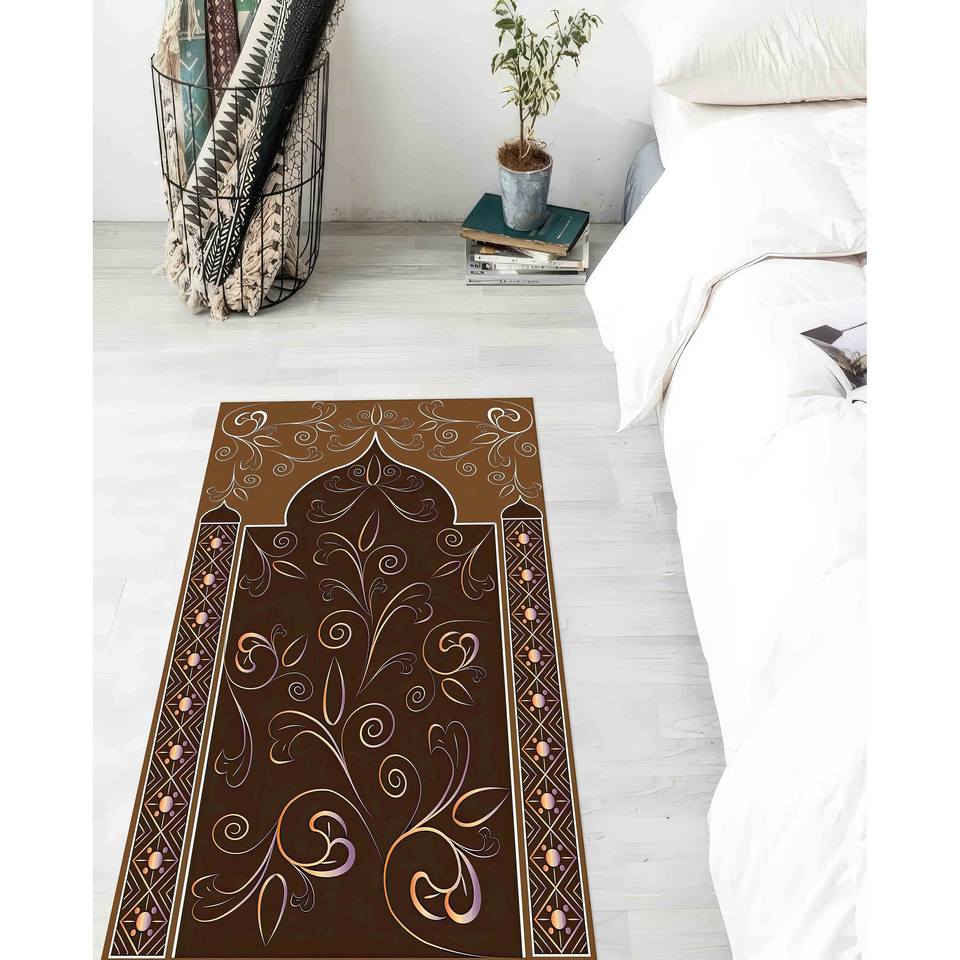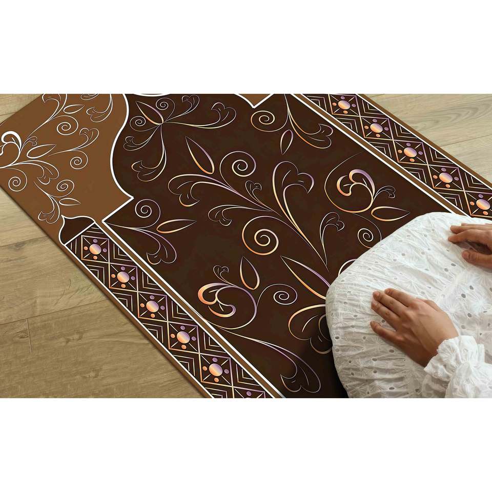 พรมละหมาดลายดอกไม้สีน้ำตาล: พรมสำหรับการละหมาดของชาวมุสลิม พรมพิมพ์ลาย พร้อมพรมขนนุ่ม