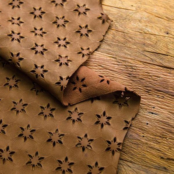 หนังตัดด้วยเลเซอร์ลายดอกไม้สีน้ำตาลมีขนาด1ถึง22ตารางฟุตสั่งซื้อหนังทนทาน