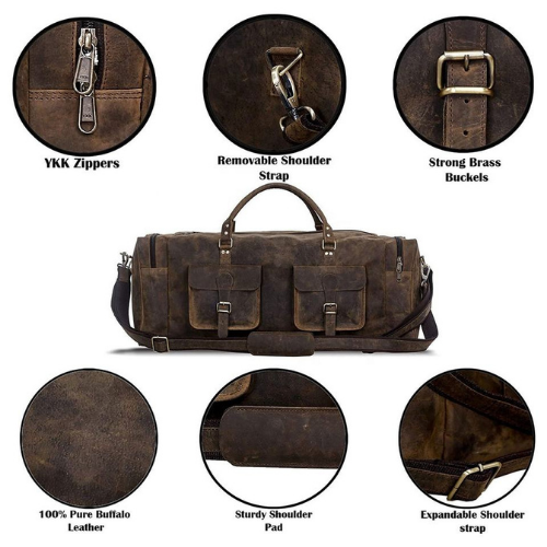 ชื่อผลิตภัณฑ์:กระเป๋าดัฟเฟิลความจุขนาดใหญ่หนังแท้สีน้ำตาล