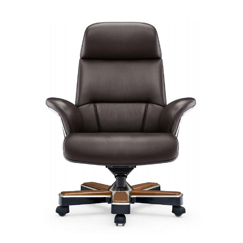 เก้าอี้สำนักงานผู้บริหารหนังแท้สีน้ำตาล ดีไซน์ทันสมัย พนักพิงสูง ปรับความสูงได้ หมุนได้ เหมาะสำหรับใช้ในโรงเรียน