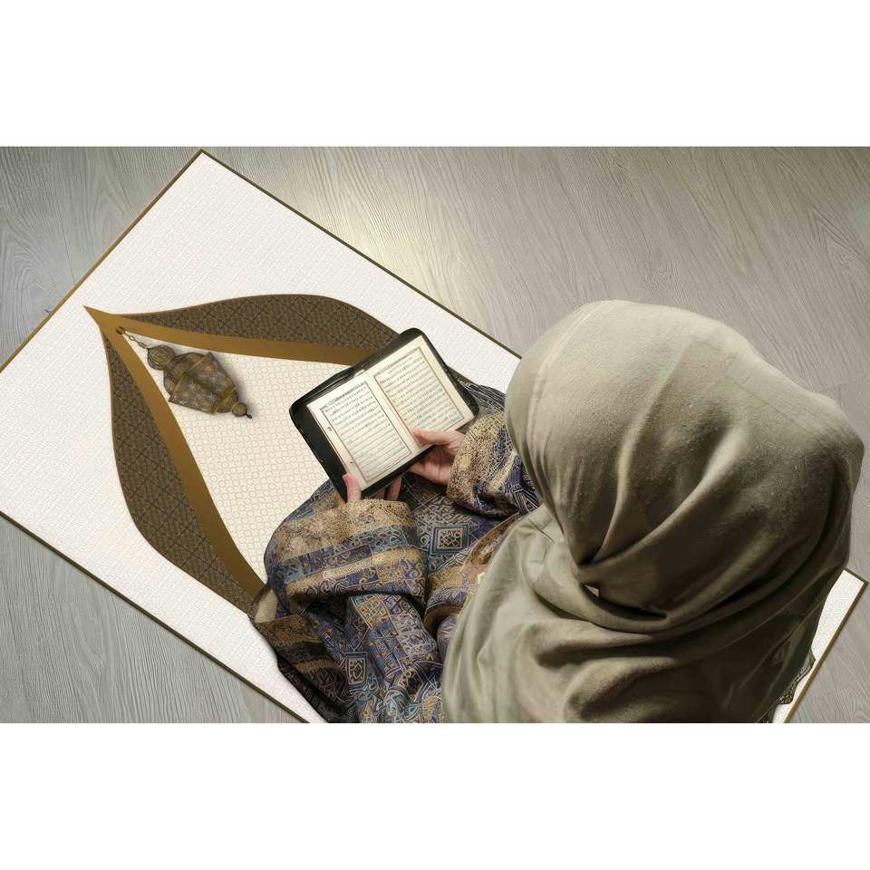 พรมอิสลามสีน้ำตาลและสีทอง: ดีไซน์หรูหราทางศาสนา, พรมพิมพ์ลาย, พรมบางไม่ทอ