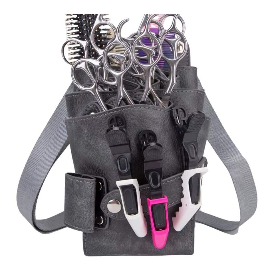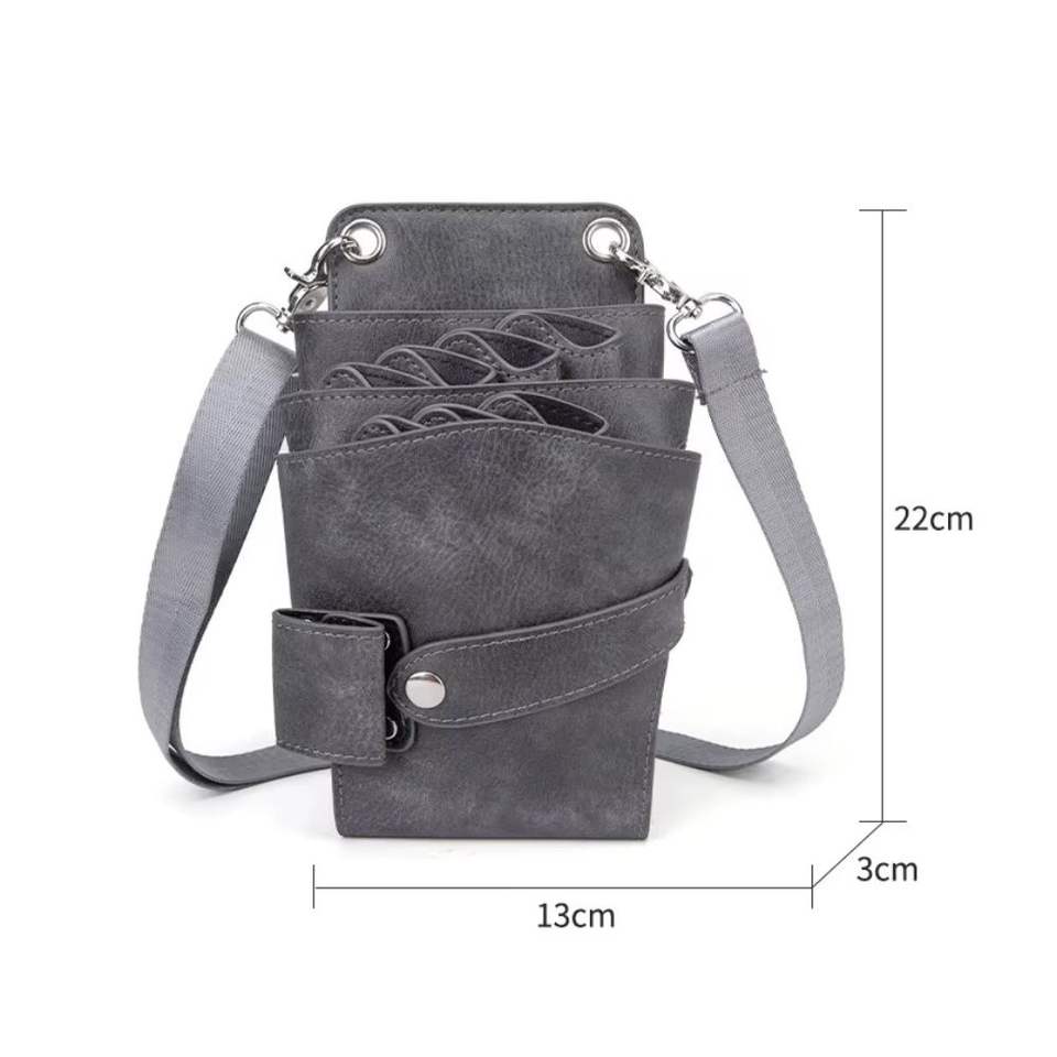 กระเป๋าใส่กรรไกรช่างตัดผมหนังแท้สไตล์วินเทจสีน้ำตาล พร้อมสายสะพายไหล่ แบบหลายช่องใส่ของ สำหรับช่างทำผม