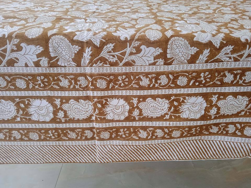 Brown Handmade Indian Farmhouse Design Pure Cotton Tablecloth Beautiful Rectangle Solid Home Wedding Outdoor