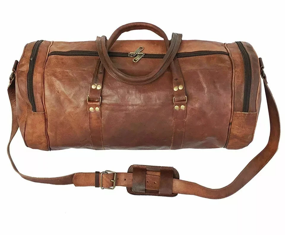 กระเป๋าทรงดัฟเฟิลกันด้วยมือทำจากหนังแท้สุดหรูกระเป๋าเดินทางสำหรับใส่ค้างคืนในยิม