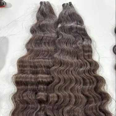 ผมมนุษย์สีน้ำตาลแบบอินเดีย ลอนธรรมชาติ ต่อผมคุณภาพดีที่สุด ราคาขายส่ง