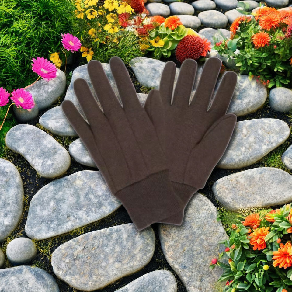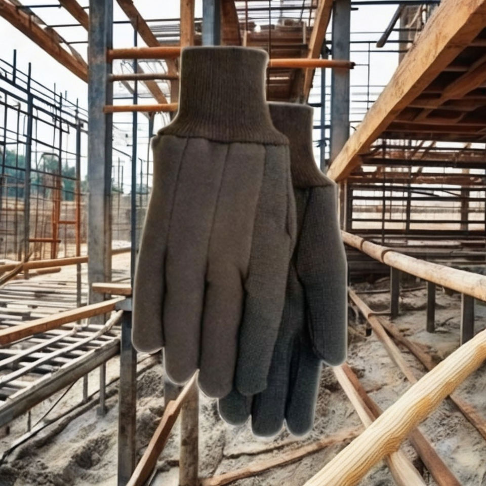 ถุงมือผ้าฝ้ายสีน้ำตาลสำหรับทำงานทั่วไป