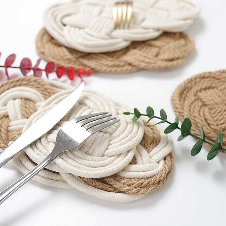 Brown Knitted Cotton Rope Cup coaster for Gift or Home Decor