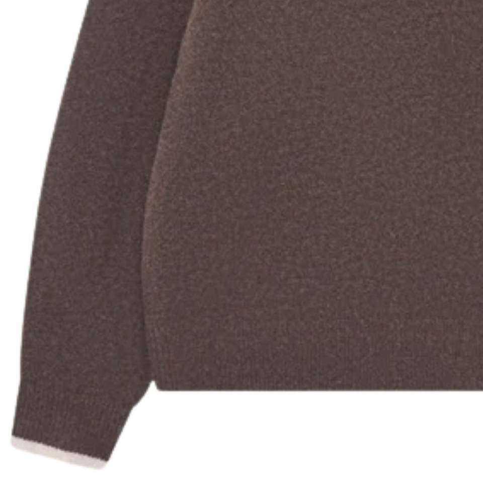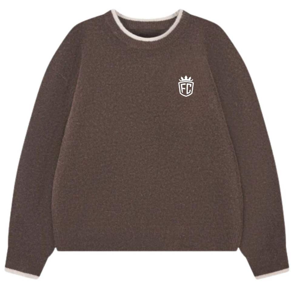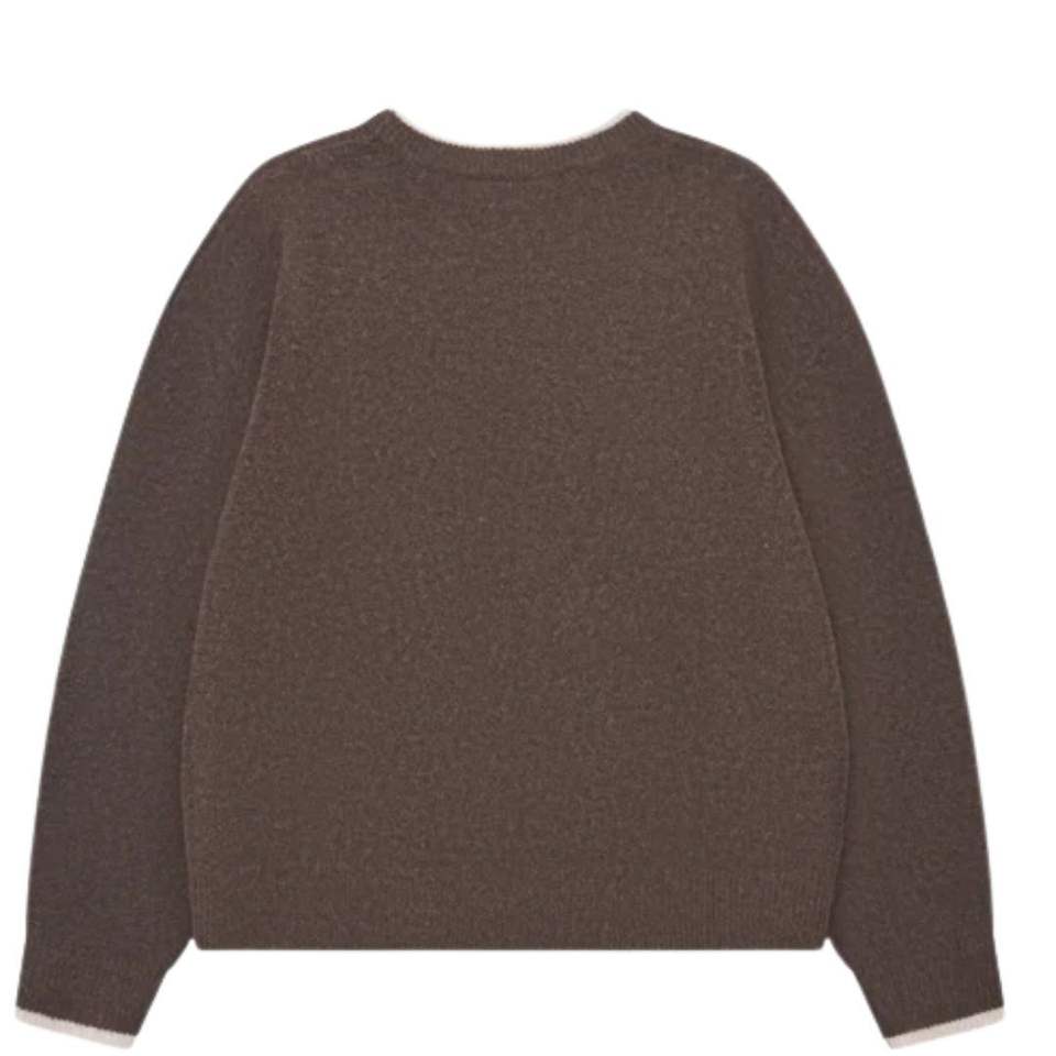 เสื้อสเวตเตอร์ถักสีน้ำตาลพร้อมขอบตัดสี ดีไซน์นุ่มสบาย กระชับพอดีตัว น้ำหนักเบา เหมาะสำหรับใส่ลำลอง
