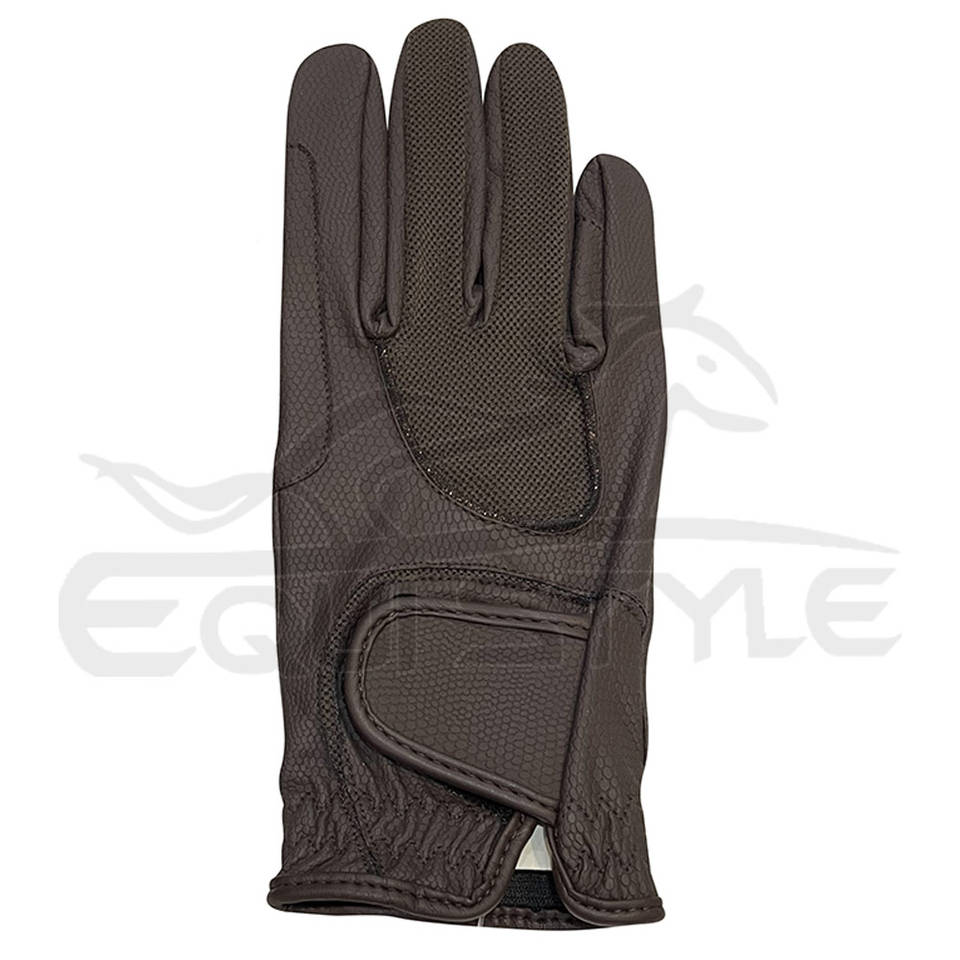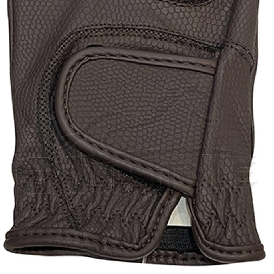 ถุงมือขี่ม้าหนังสีน้ำตาลมีด้ามจับรังผึ้งและชุดกระโปรงกระโดดม้าทัชสกรีน