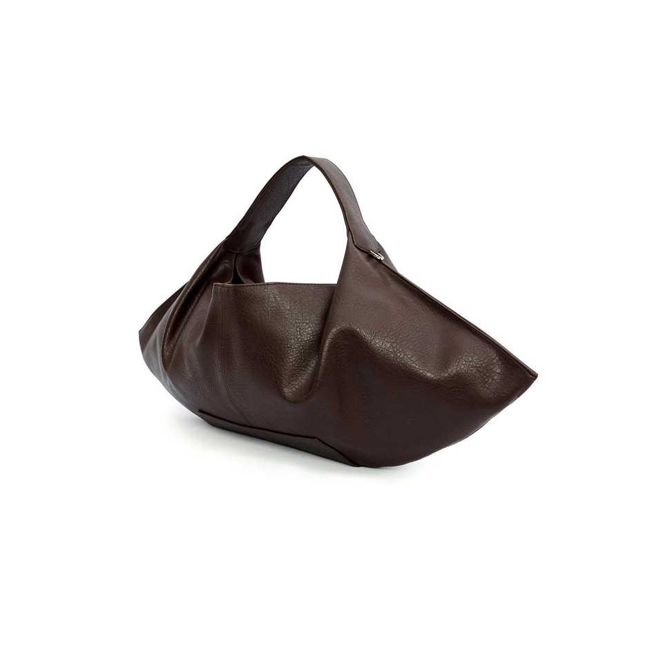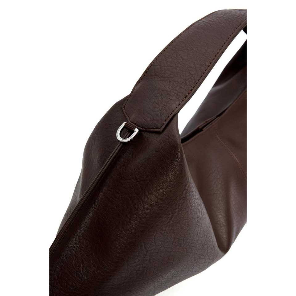 กระเป๋าหนังสะพายข้างสีน้ำตาล Marlon แบบหูหิ้วเดี่ยว พร้อมกระดุมปิด ดีไซน์สำหรับสุภาพสตรี บุด้วยผ้าแคนวาสและลายเย็บด้าย
