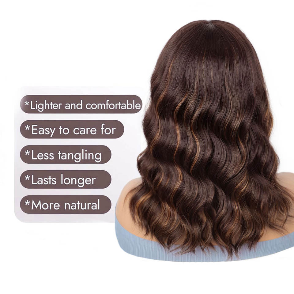 วิกผมสีบลอนด์ผสมสีน้ำตาลสำหรับผู้หญิง14นิ้วไหล่ยาว14นิ้วผมสังเคราะห์หยักศกนุ่มทนความร้อนไฟเบอร์สำหรับธรรมชาติ