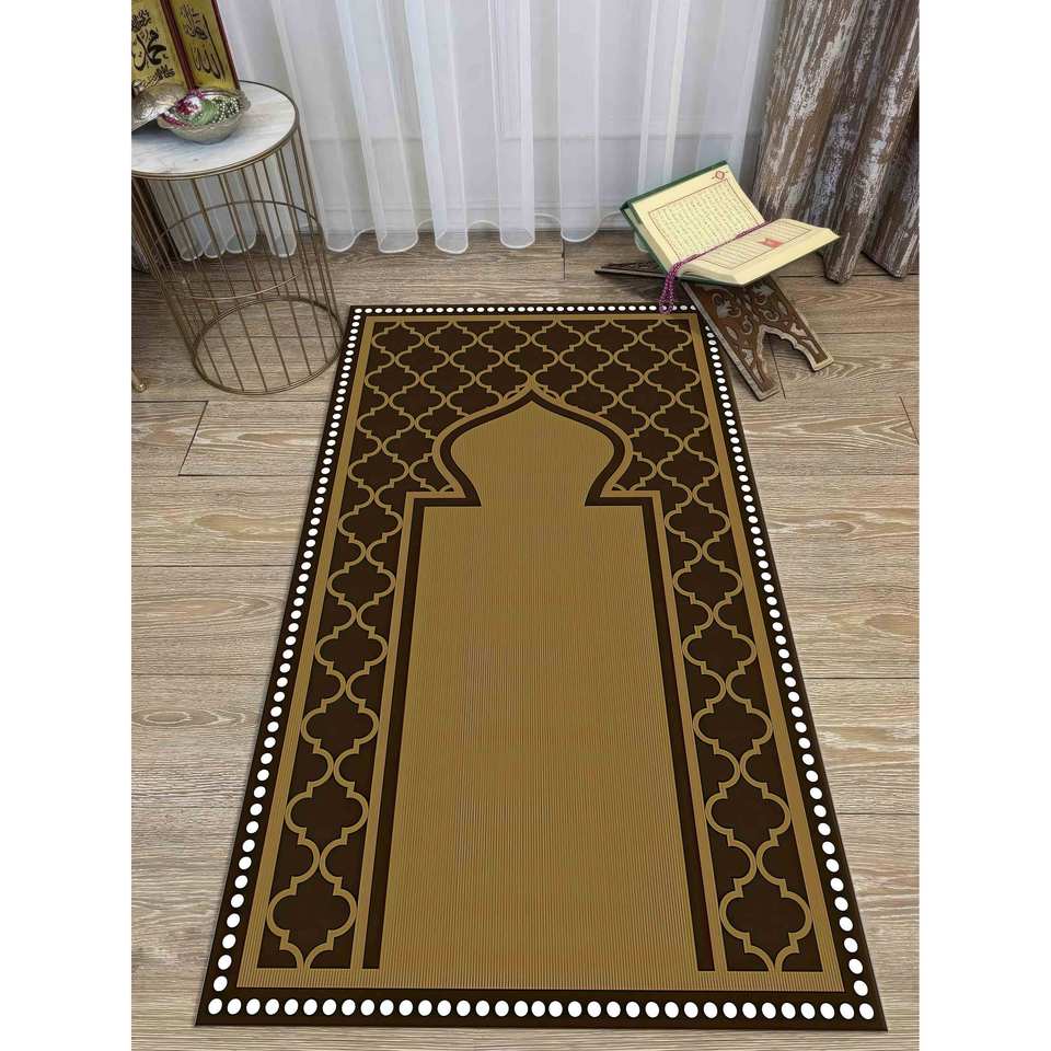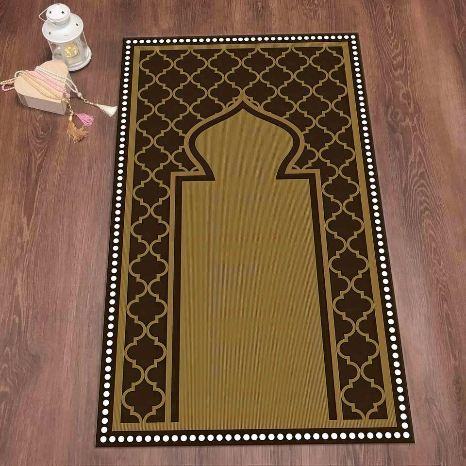 พรมละหมาดสีน้ำตาล: พรมสำหรับการประกอบพิธีทางศาสนา ซักเครื่องได้ พรมพิมพ์ลาย พรมขนนุ่ม