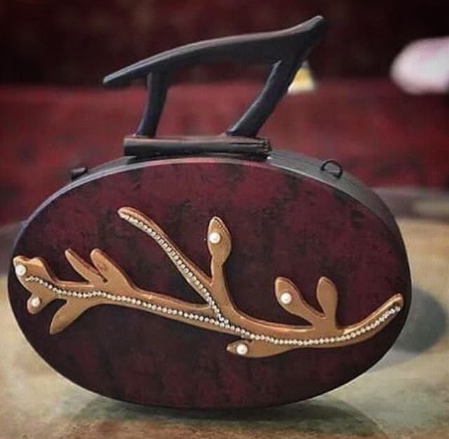กระเป๋าคลัทช์ทรงธรรมชาติทำมือจากอินเดีย ลายสัตว์ วัสดุออร์แกนิค สีน้ำตาล เป็นมิตรกับสิ่งแวดล้อม