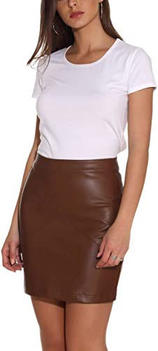 กระโปรงทรงเข้ารูปเอวธรรมชาติสำหรับผู้หญิง ทำจากหนัง PU สีน้ำตาล ระบายอากาศได้ดี มีซิปและเข็มขัด เป็นมิตรกับสิ่งแวดล้อม เหมาะสำหรับใส่ไปเที่ยวคลับ