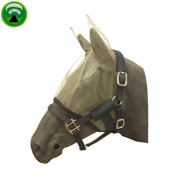 หน้ากากกันแมลงสำหรับม้าแบบตาข่าย PVC สีน้ำตาล พร้อมที่คลุมหู