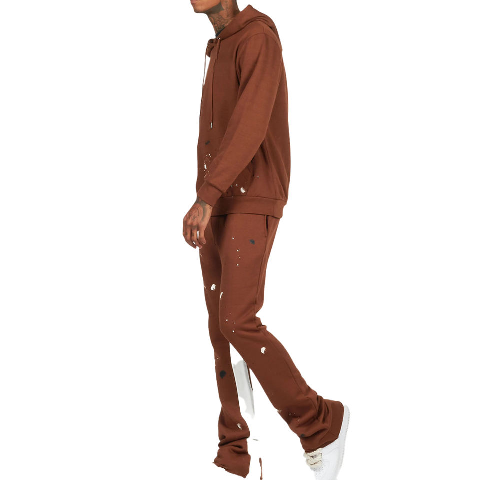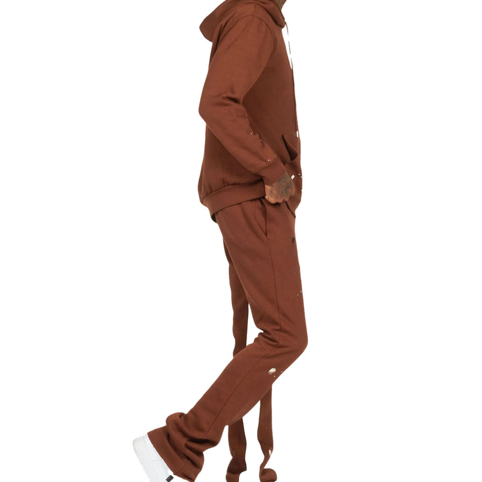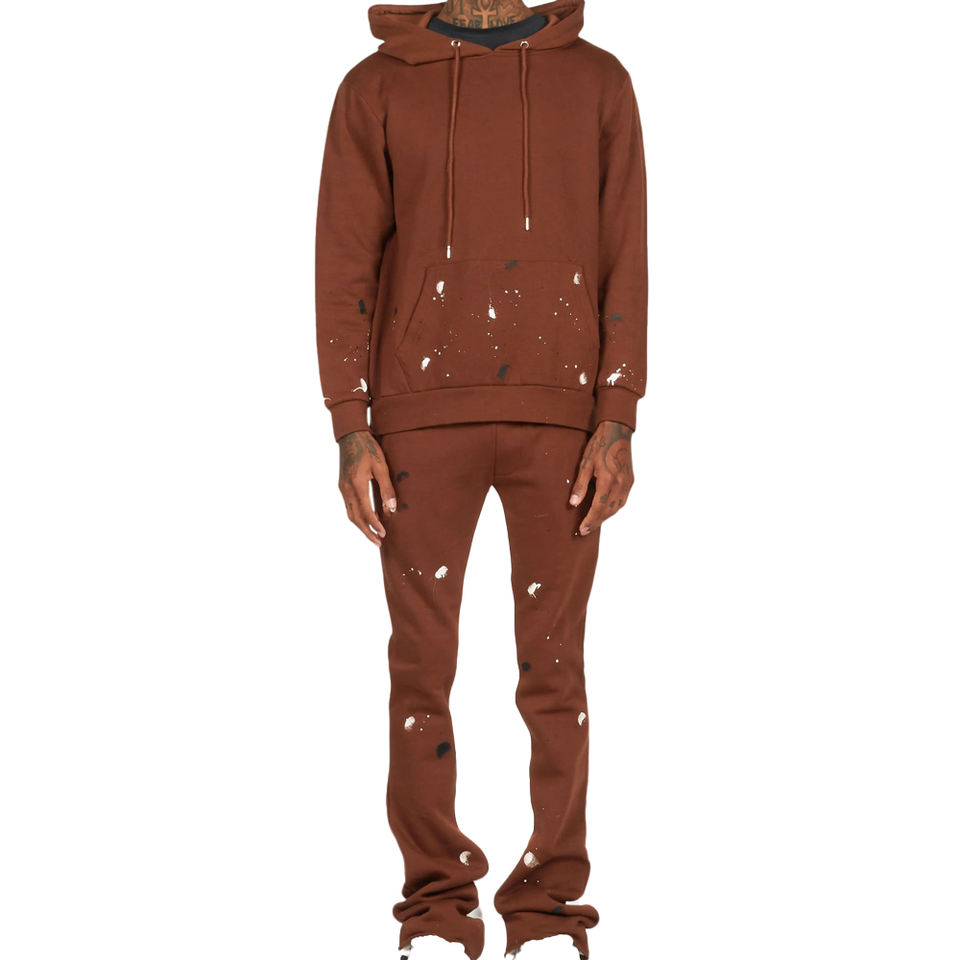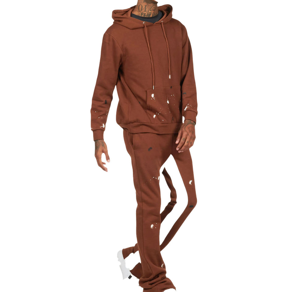ชุดวอร์มผ้าปะต่อสีน้ำตาลสำหรับผู้ชายชุดมีฮู้ดแนวสตรีทชุดใส่วิ่งชุดแฟชั่นลำลองเสื้อผ้าสองชิ้นใส่สบาย