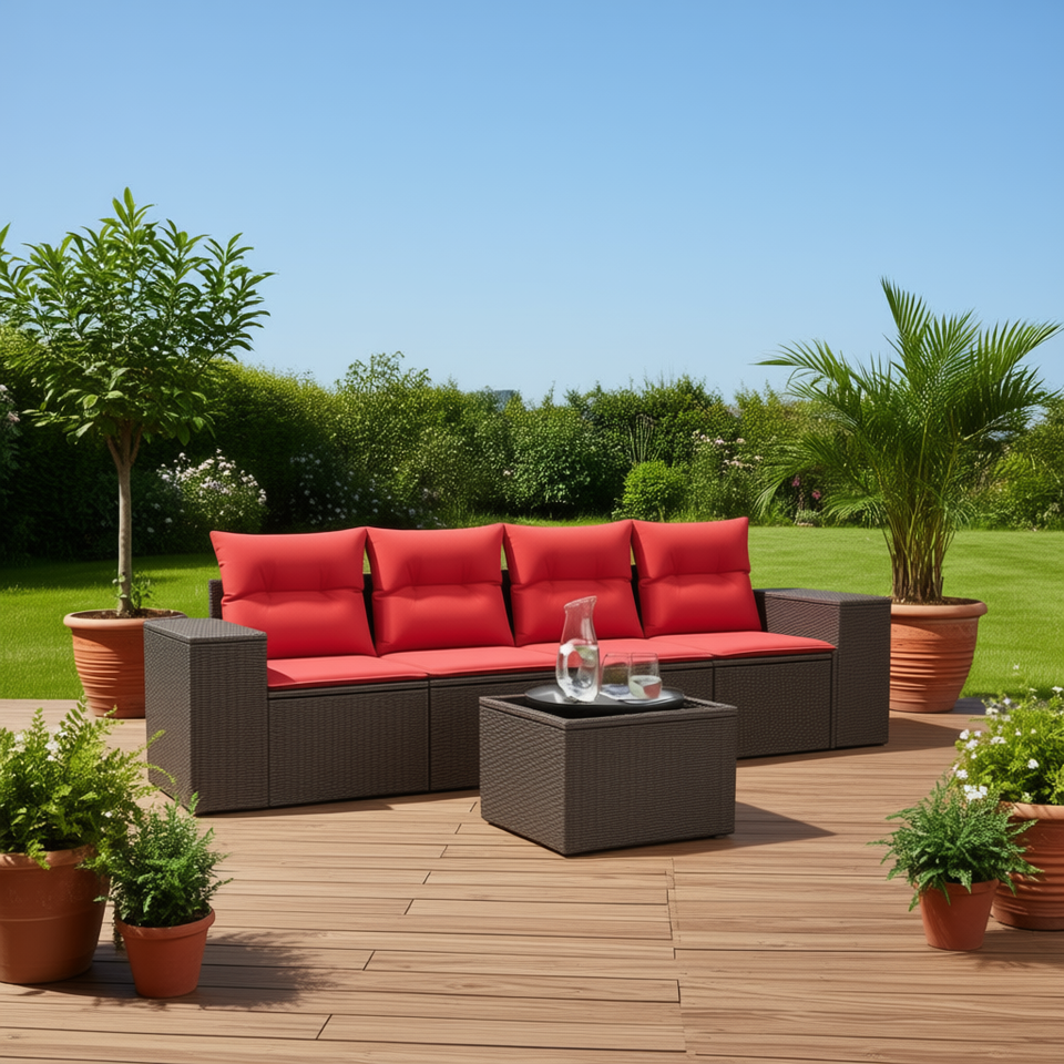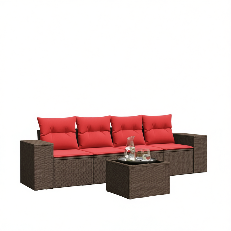 ชุดโซฟาสวนหวายสีน้ำตาลพร้อมเบาะรองนั่ง เฟอร์นิเจอร์ระเบียง 5 ที่นั่ง สไตล์ร่วมสมัยสำหรับกลางแจ้ง