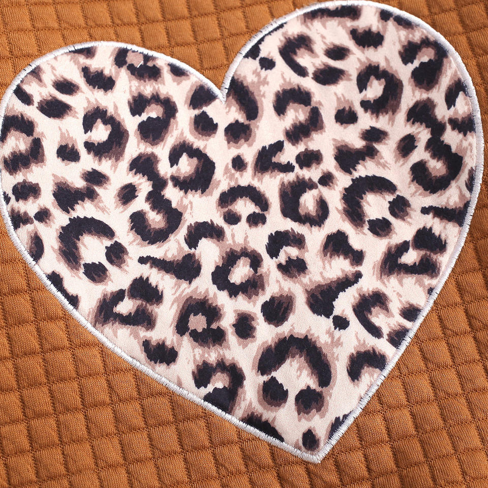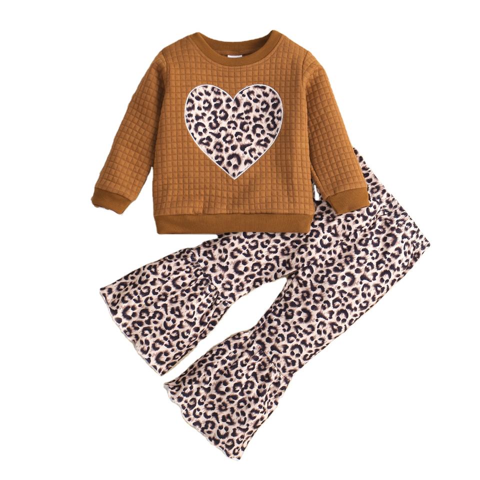 ชุดเสื้อผ้าเด็กผู้หญิงลำลองผ้าฝ้ายพิมพ์ลายสีน้ำตาล ชุด 2 ชิ้น เสื้อแขนยาวและกางเกงลายเสือดาว