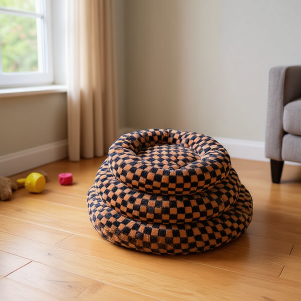 ชุดรังกลมตุ๊กตากระต่ายสีน้ำตาลสามชิ้นสำหรับสัตว์เลี้ยงสำหรับเตียงสัตว์เลี้ยง